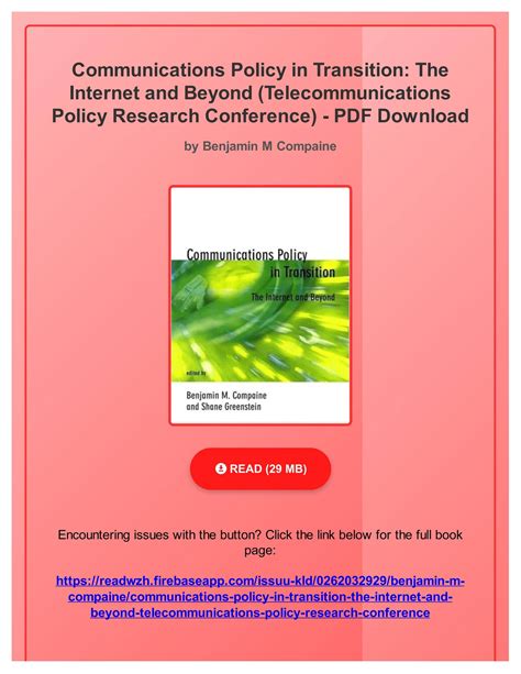 In order to read or download Communications Policy In Transition The Internet Beyond Book Mediafile Free File Sharing ebook, you need to create a FREE account.